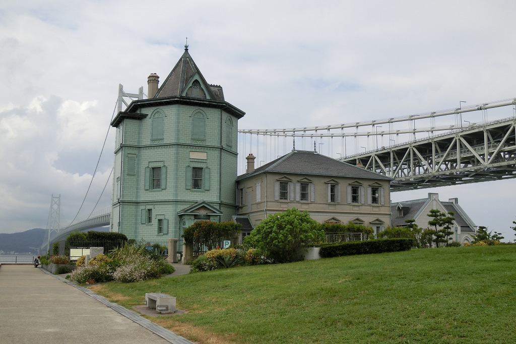 舞子浜に面した緑のきれいな公園で、間近に迫力いっぱいの明石海峡大橋を見ることができます。公園内には、孫文記念館や旧武藤山治邸などの洋館も移築されています。