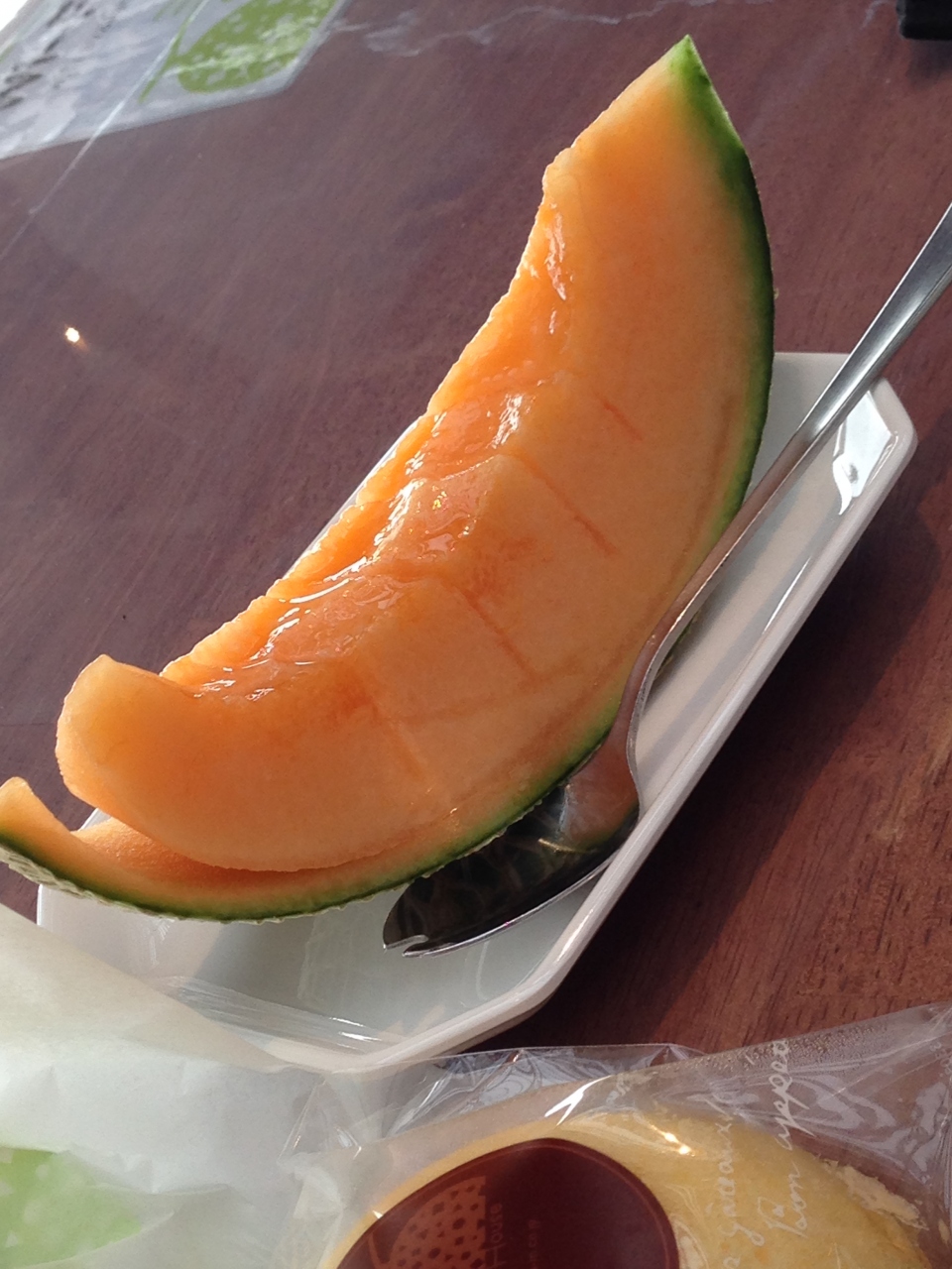 手軽に食べたかったのでショーケースに並んだカットメロン注文。メロンは・・物凄く甘くて美味しかったです!メロンの味が濃くて甘くて、関西のスーパーでは手に入らない美味しさだと感じました。