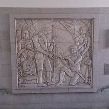 和歌山県庁本館の中央階段には保田龍門という和歌山県紀の川市出身の画家・彫刻家が作成したニ枚のレリーフがあります。