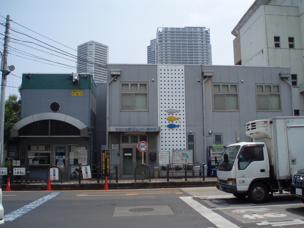 東京メトロ日比谷線築地駅1番出口より晴海通りを勝鬨橋手前の築地市場自動車入口を入って直ぐ左手にあるおさかな普及センター資料館に歩いて8分ぐらいで着きます。おさかな普及センター資料館はおさかなのパネル展示してますが管理事務所のようです。