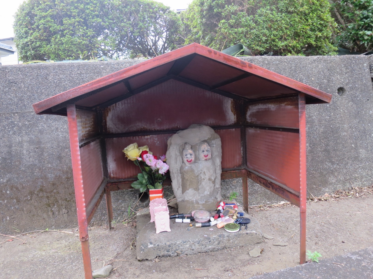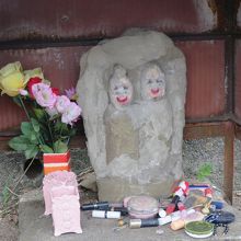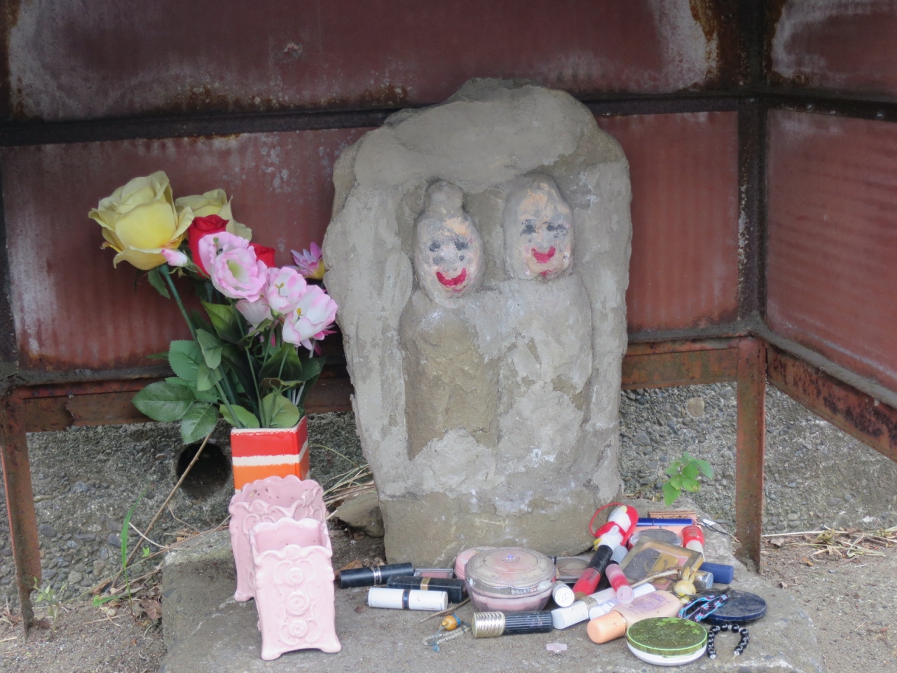 祠を覗くと、お化粧を施されたお地蔵さんが二体並んでいました。