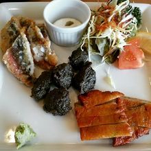オリオンビールとおつまみ盛り合わせを。グルクンも天ぷらもおいしかったです。
