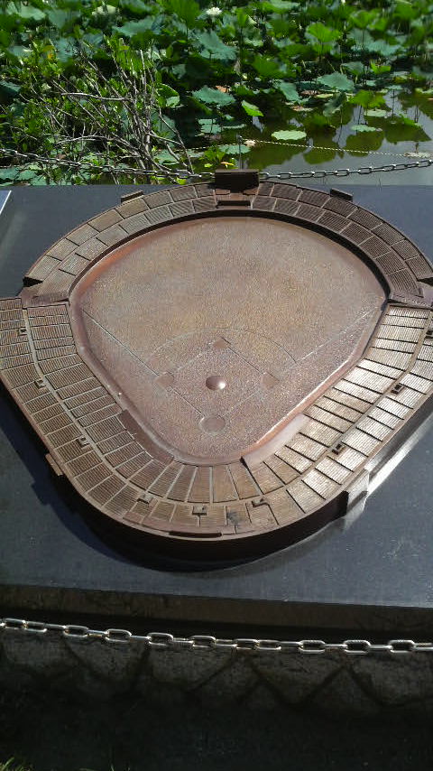 西鉄ライオンズ、九州野球文化の象徴であったと言っても過言ではない平和台球場の跡地近くにある球場型のモニュメントです。今となってはヤフオクドームもあり、平和台球場自体も文化財だったと思うのですが、鴻臚館が発掘されたため、残念ながら平和台球場は取り壊されましまいました。あれだけ熱狂的なファンがいたにも関わらず、モニュメントは目立たず、とても小さい感じがしました。