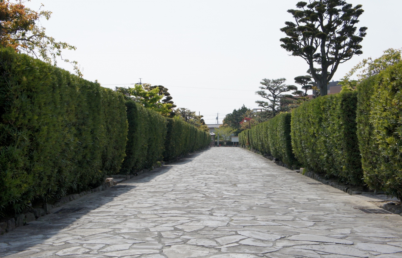石畳がまっすぐに伸び、道の両側に平屋の長屋と槇垣が巡らされ、ここだけ時が止まったようです。