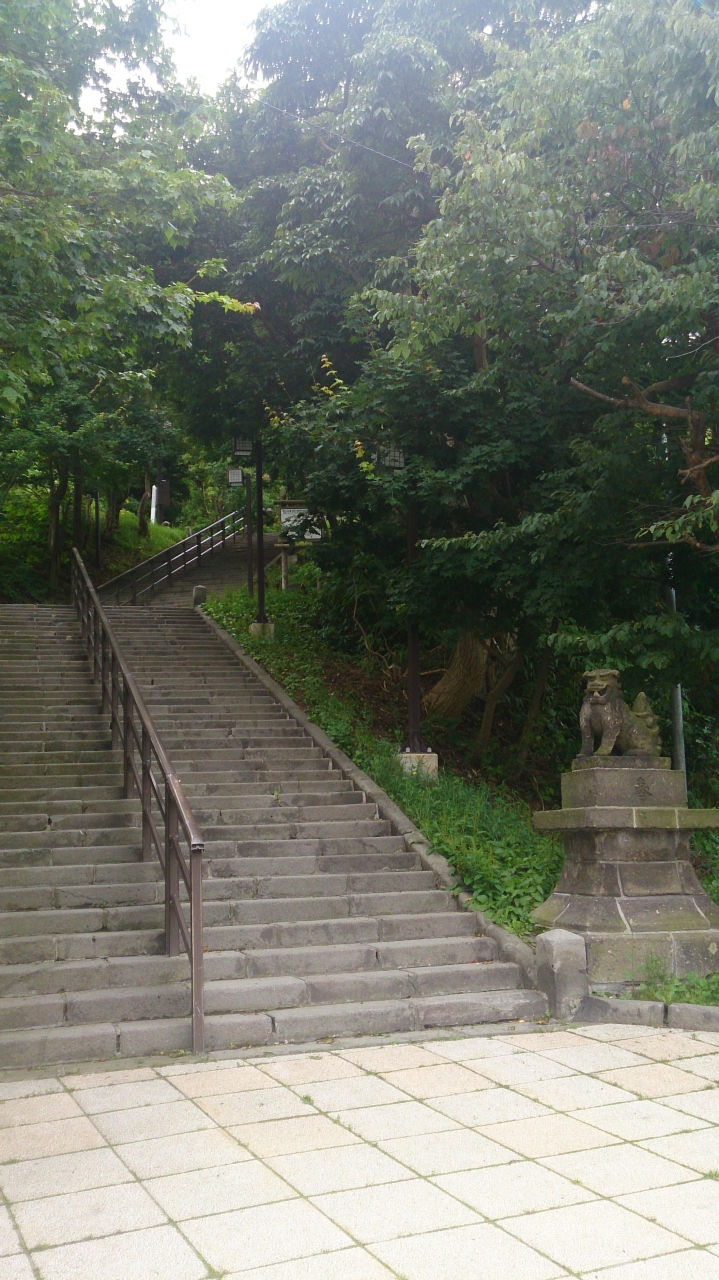 1785年、松前藩の村山伝兵衛が宗谷の地に北門鎮護として宗谷大神宮として建てられたのが始まりです。1896年に現在の場所に移りました。周りは、自然が多く稚内公園に続く散策路もあります。毎年7月5日には大祭が開かれ、市民に愛された神社です。