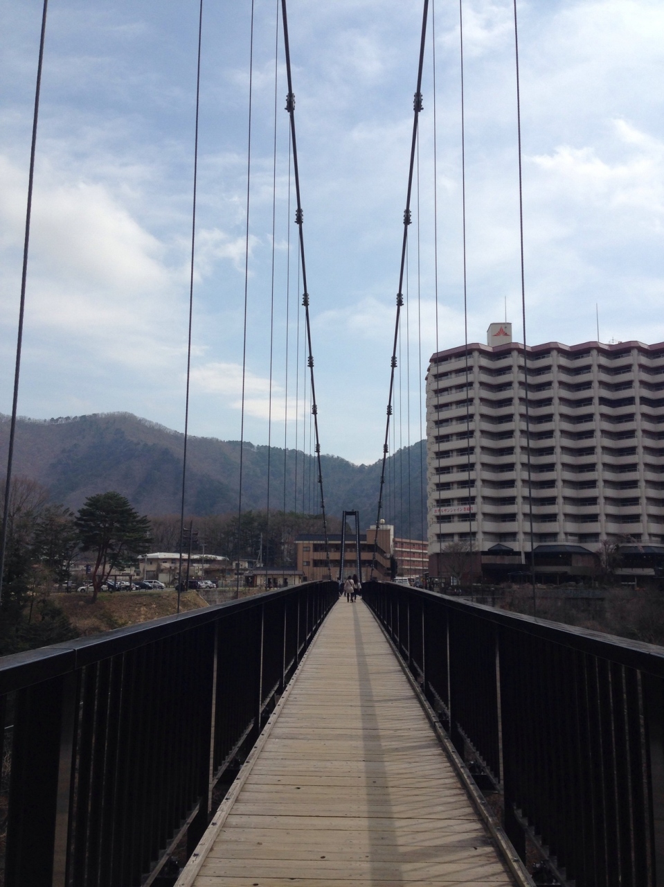 宿泊先のホテルハーヴェスト鬼怒川に荷物を預けてから、こちらの鬼怒楯岩大吊橋へと歩いて向かいました。
