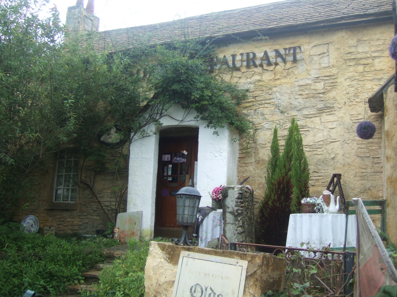 ホームページを見ると「長い長いくねくね道を登りきった峠のてっぺんに英国カントリーサイドができました。」とあってすごく良さそうなところでした。というわけで万博公園から彩都を抜けて寂しい山道を走って行きましてようやくたどり着きました。まず第一印象は「たぶんこれだろうけど、本当にこれがそうなの?」という思いでした。周りは草だらけで表現は悪いけど廃墟っぽい雰囲気…。おまけに看板がいくつか立てかけてあってここで食事をしたりお茶を飲んだり買い物をしたりするお客以外は歓迎しないという内容が見て取れましたので、ちょっとこれは違うのじゃないと思って入るのをやめて出発しました。そうした考えが会社の方針なのでしょうが、どうせなら気持ちよく観光客を迎える心づかいが欲しいなと思いました。