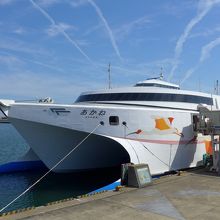 直江津〜小木に就航した「あかね」は双胴の高速フェリー。これまでのフェリーに比べ格段にスピードアップしていて、100分で到着する。全席指定となっていて、2等客席でも十分なスペースがあるので快適。船内にはおやつやおにぎり、その他お土産品を扱う売店があり、カップ麺に注ぐお湯のサービスもある。料金はもともと安くなかったが、急行料金が加算されたので高いと感じる。往復割引や、新潟〜両津との周回切符を利用するのが良いと思われる。