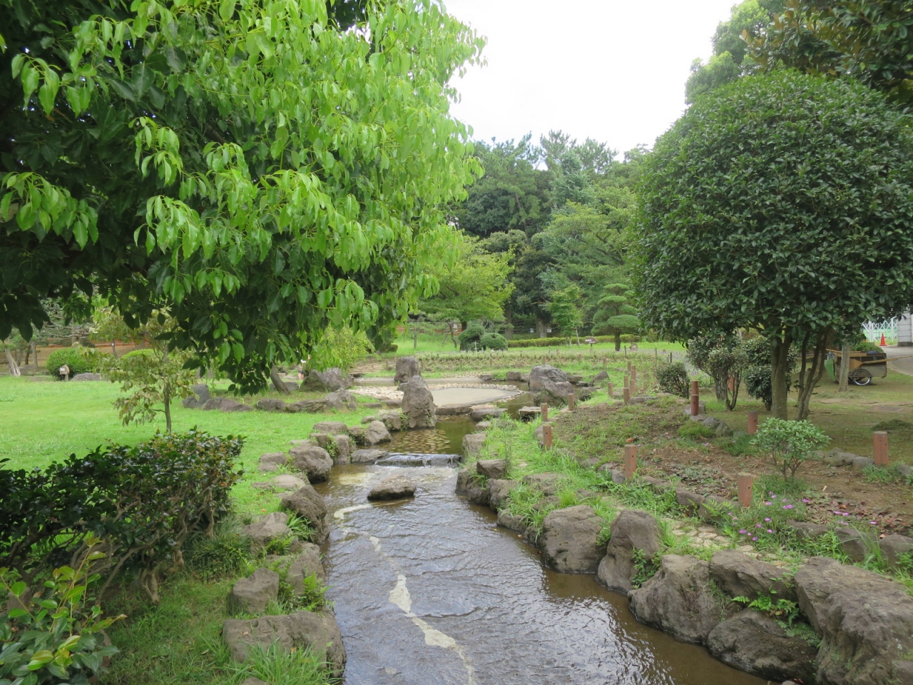 水路は庭園風で、泥で汚れることもなく、一般道路に接しているさむかわ中央公園の水路と違って、敷地が囲われているため、車の心配もありません。