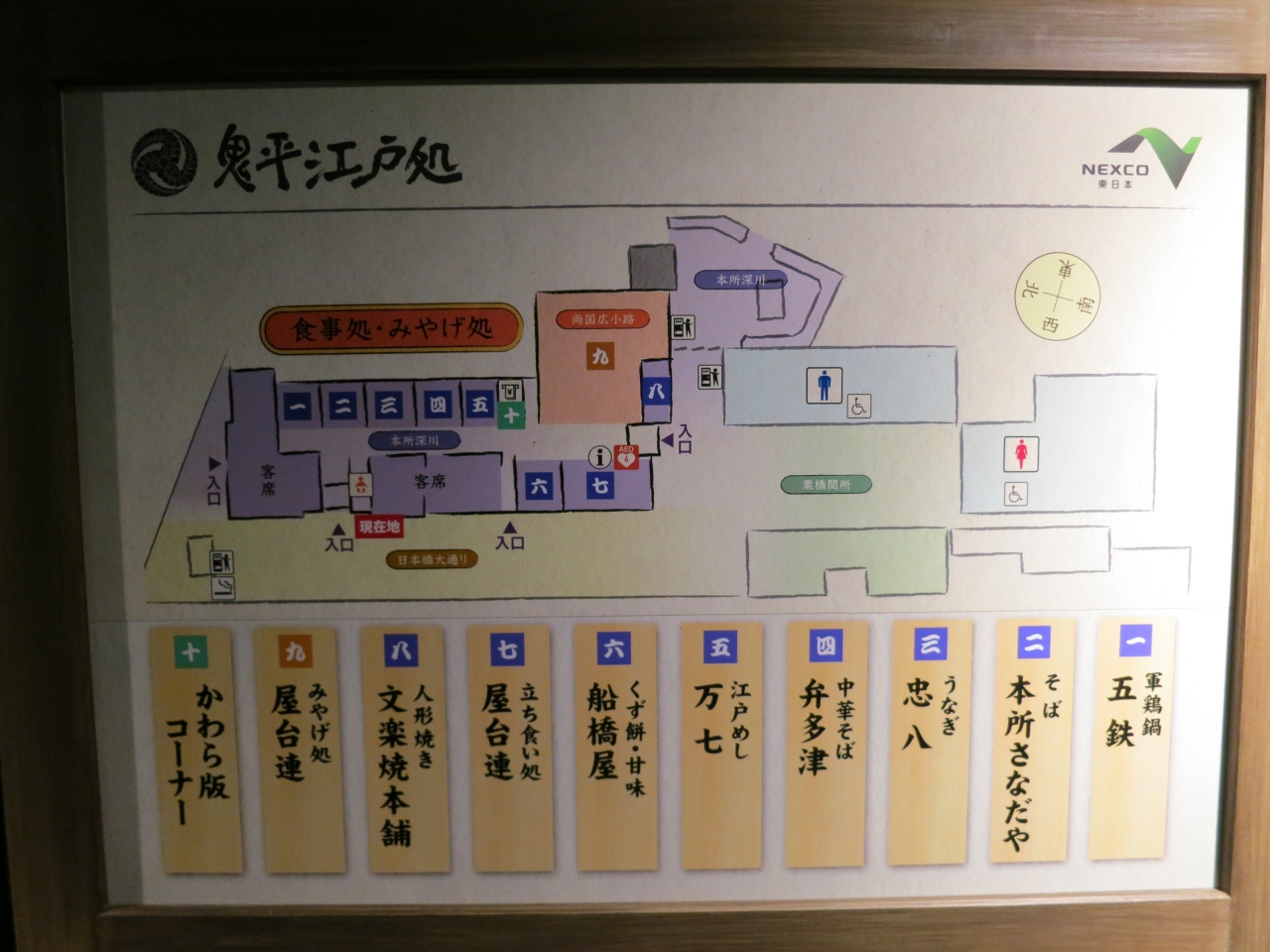 東北自動車道にある、小説家・池波正太郎原作の「鬼平犯科帳」の世界を再現した江戸時代の街並みが広がるアミューズメントパークのようなPAです。那須からの帰り、週末の19時頃寄りました。最近出来て人気のPAだけあって、観光バスが沢山止まり、沢山の人で混んでいました。忠実に再現された街並みを見学した後は、立ち食い処屋台連で、子どもたちはそれぞれ江戸ソフトクリーム(抹茶ミックス)¥370を、私は冷やし飴フロート¥480を購入し、休憩しました。その後、みやげ処屋台連でお土産などを購入し、PAを後にしました。東北道の休憩におススメの、美味しいものが揃っていて、江戸時代の街並みが広がるアミューズメントパークのようなPAです。