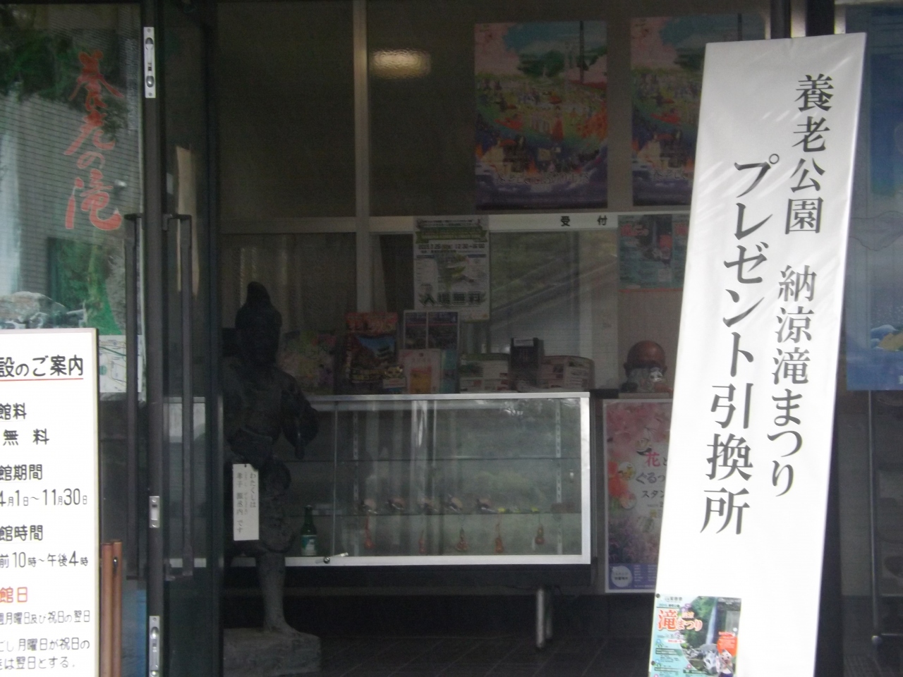 養老公園内を少し散策していると親孝行のふるさと会館と書かれた建造物があったので入ってみました。入場料は無料でしたが、養老の滝の伝説を人形で表現していることをのぞいては、たいしたものではないと感じました。あきらかに、駐車料金を損した気分でした。このあと、車で養老の滝近くにある駐車場まで走らせましたが、これも失敗だと言えます。だめな時には、歯車が完全に狂うようです。