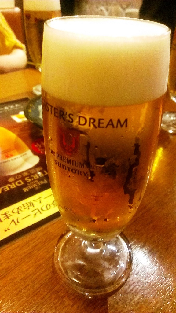 店の名物はもちろん、歯ごたえのあるジューシーな地鶏だが、それと合うのが数量限定(1日20杯だったかな?)サントリー・マスターズドリーム生ビール。