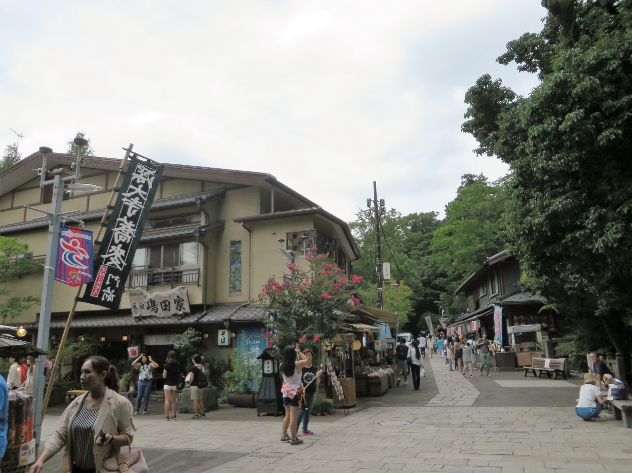 京王線の調布とつつじヶ丘が最寄り駅で、路線バスで10分ほど。深大寺の参道はバス停の目の前です。参道には、比較的大きな店構えのお店が10数軒並んでいて、観て歩くだけでも楽しめます。お蕎麦がメインですが、お団子やおまんじゅうなども名物として売られています。参道から階段を10段ほど登ると深大寺の境内。本堂は無量寿です。
