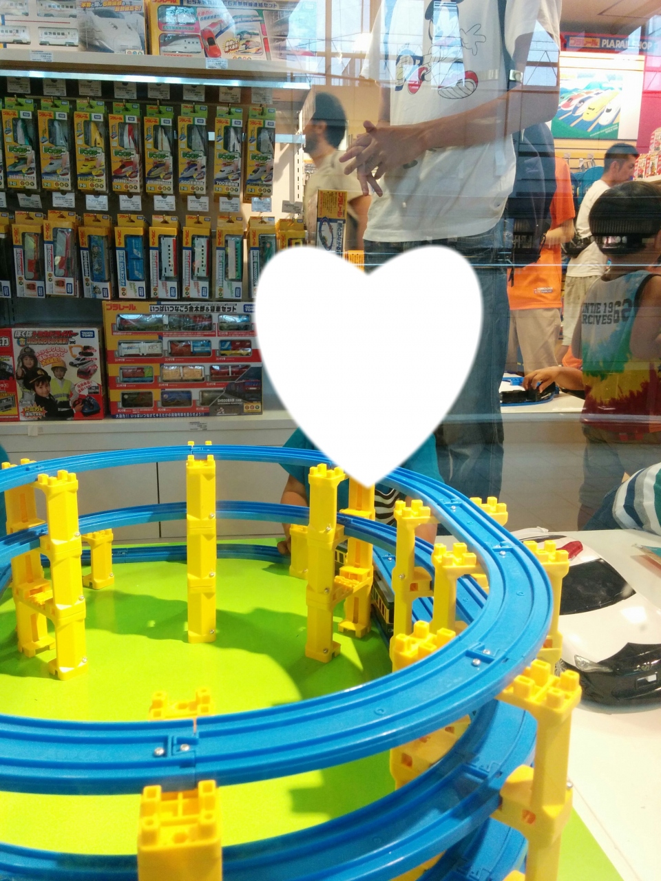 店内に大きなプラレールとトミカの展示があり、実際に遊ぶことができます。