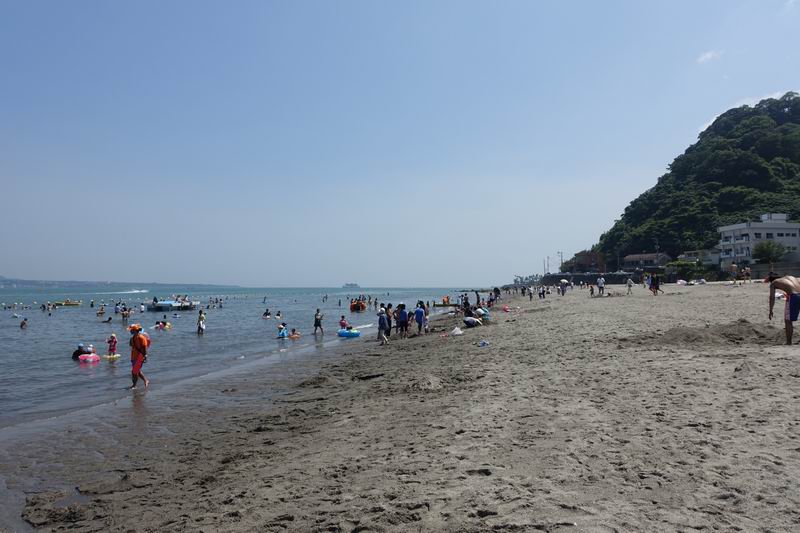 開設期間中は磯ビーチハウスがオープンし、トイレ、シャワー、更衣室などが使えます。湾なので波も穏やか。監視員もいて、遊泳エリアと水上スキーなどのエリアはブイで分けられていました。周辺には名物のぢゃんぼ餅を売る店が数軒あります。