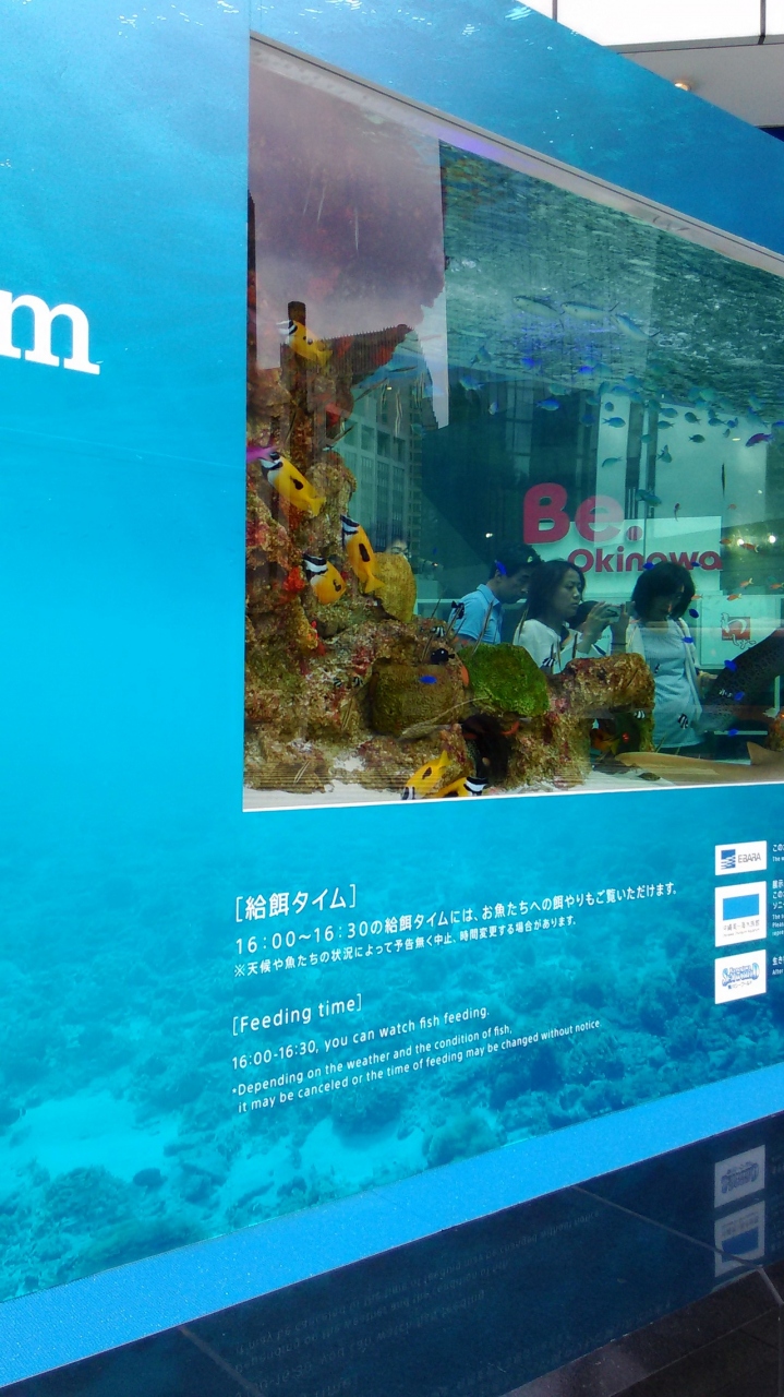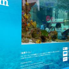 1階のエントランスホールにも水槽があり、こちらはエアコンが効いた涼しい館内で沖縄の魚たちを見ることができます。