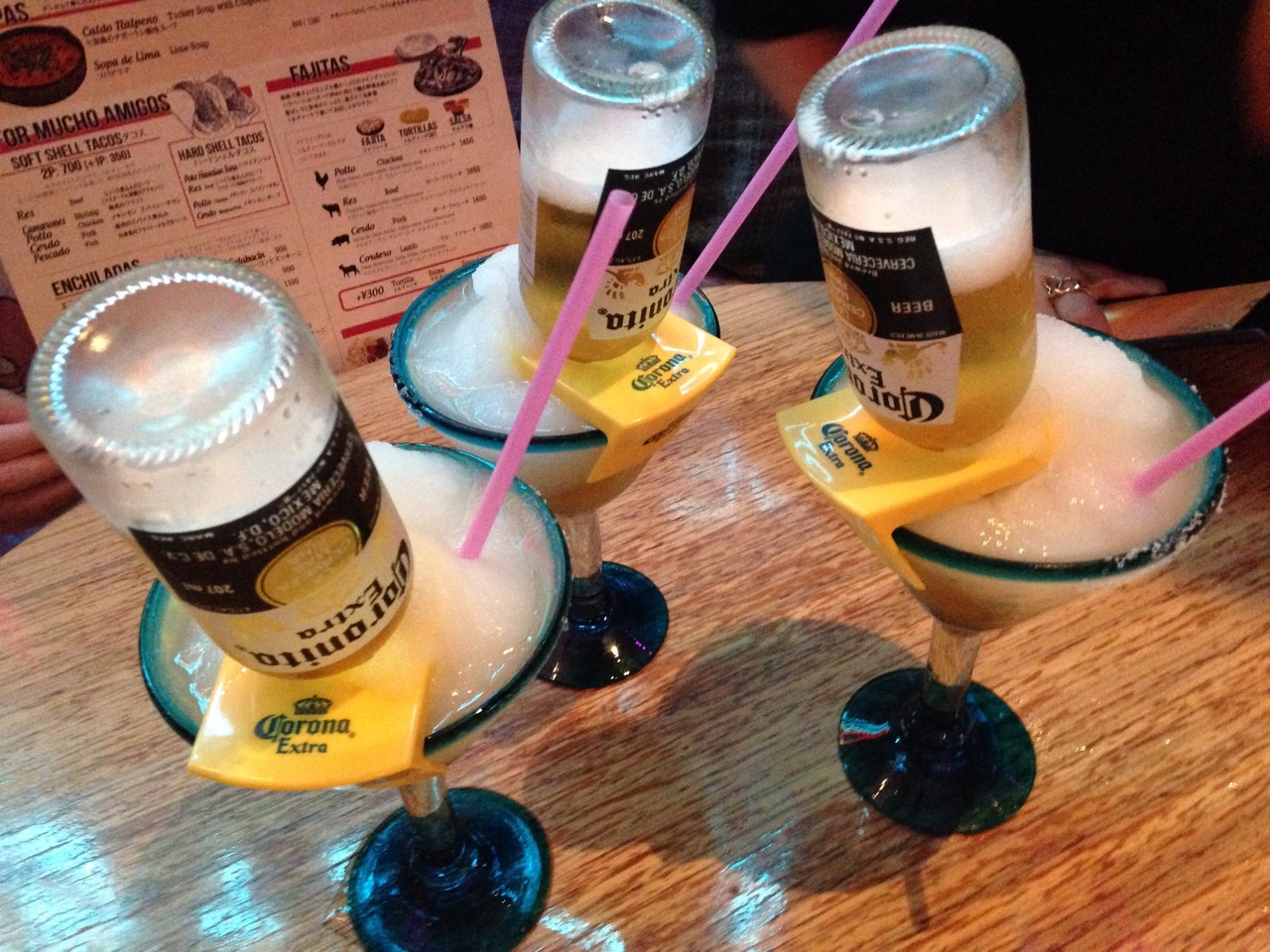 コロナのミニボトルが突き刺さったコロナリータ・ライムなど。