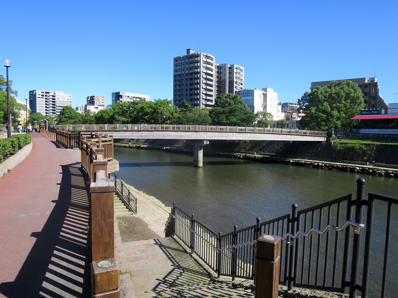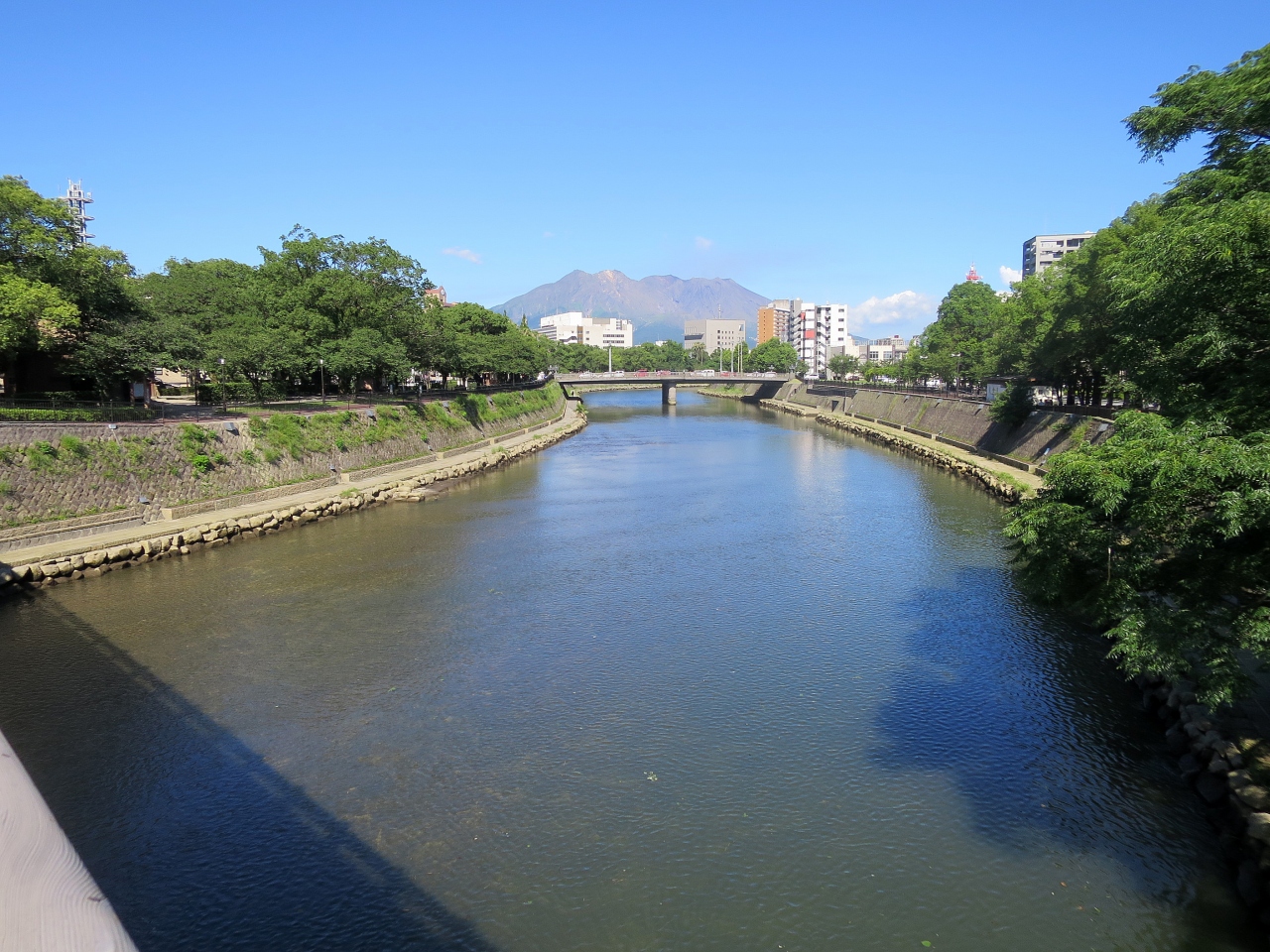 前回の鹿児島滞在時には「城山観光ホテル」と共に、川の脇にある「鹿児島東急イン(現:鹿児島東急REIホテル)」に宿泊し、川沿いにある「歴史ロード“維新ふるさとの道”」などの名所・旧跡を巡ったため、この「甲突川」を見ると、「あ~ぁ、鹿児島に戻って来たんだなぁ」という感覚を覚えました。この「甲突川」周辺は、維新の担い手となった薩摩藩下級武士たちが住んでいた地域ですから、しばし維新の志士の気分になって、「高見橋」から「高麗橋」へと川沿いの散歩を楽しみました。