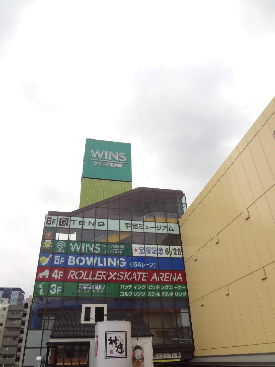東京ドームのすぐ近くにある黄色い建物です。ウインズが入っていることから、競馬のイメージが強い建物でしたが、昨年、6階に宇宙ミュージアム、テンキュ―が出来たりして、家族連れも多く見かける建物になりました。