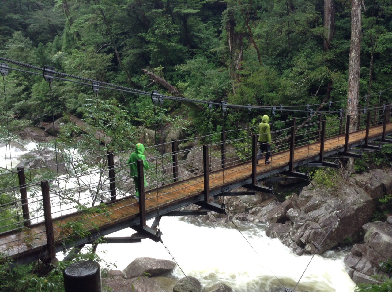 大きな吊り橋があったり、少し歩くとすぐ大きな杉が見れたりして