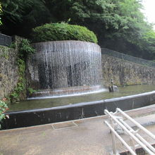 有馬温泉駅のすぐ近くに流れる人口の滝。モニュメントがあります。湯けむりに見立てた滝だそうです。滝の前の小さな可愛い像はかっぱの像です。有馬温泉を愛した太閤秀吉の像は座っています。有馬川をはさんでねね様像があるので、仲良しですね。