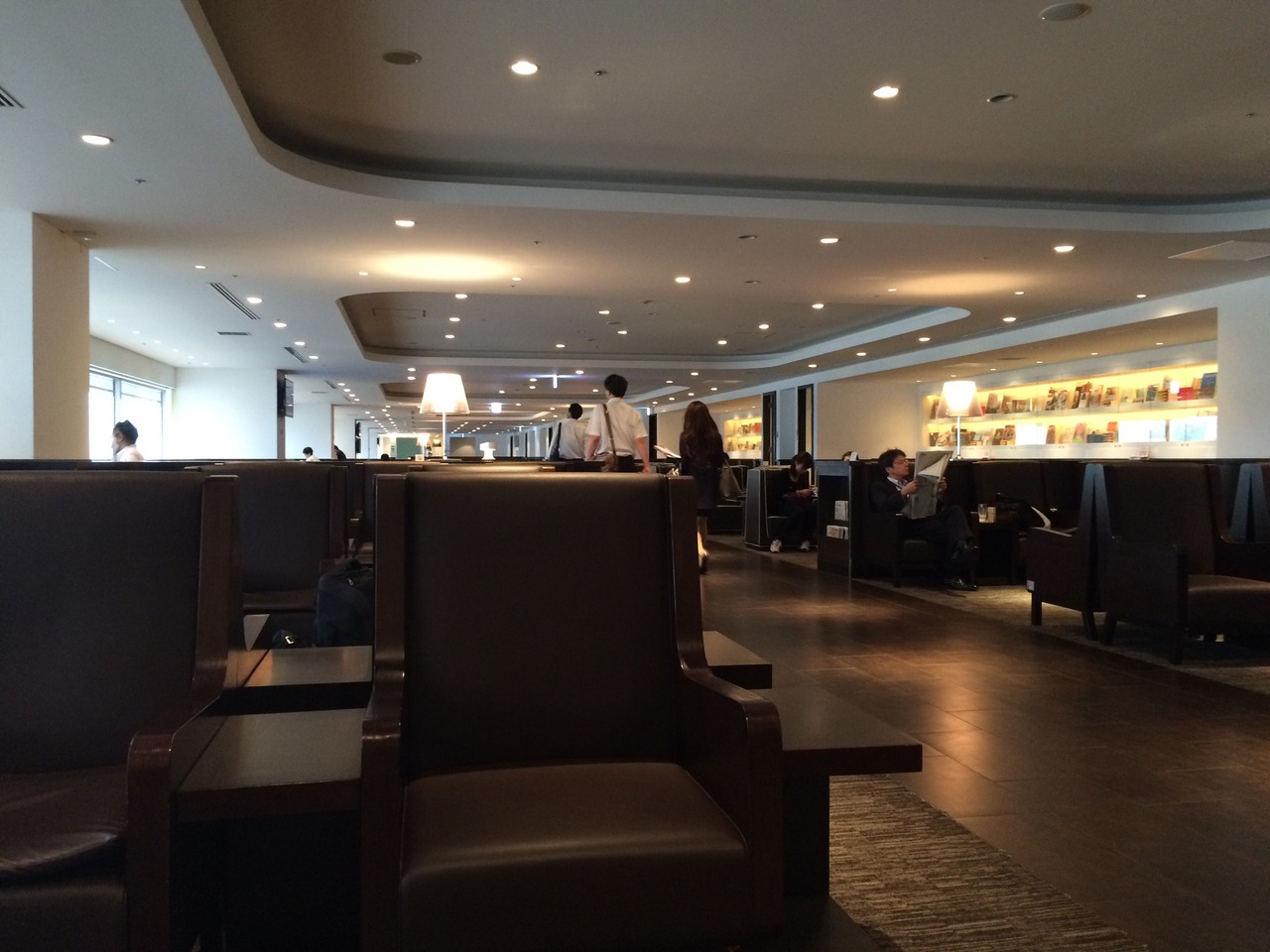 早朝の便だったため朝6時に行きました。エスカレータを登った受付で、ボーディングパスの2次元バーコードを読み取り機にピッとやると完了です。ダイヤモンドプレミアは右、サクララウンジは左です。