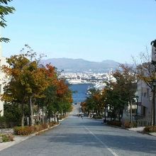 ただの坂道と言ってしまえばそれまでですが、いろんな作品に使われるだけあって実際に見てみると気持ちいいの一言。通行人もいれば車も通る普通の生活道路でもありますので、シャッターチャンスを狙うにはちょっと待つ必要もあります。快晴だったので、結婚式の写真を撮ってるプロの方もいらっしゃいました。