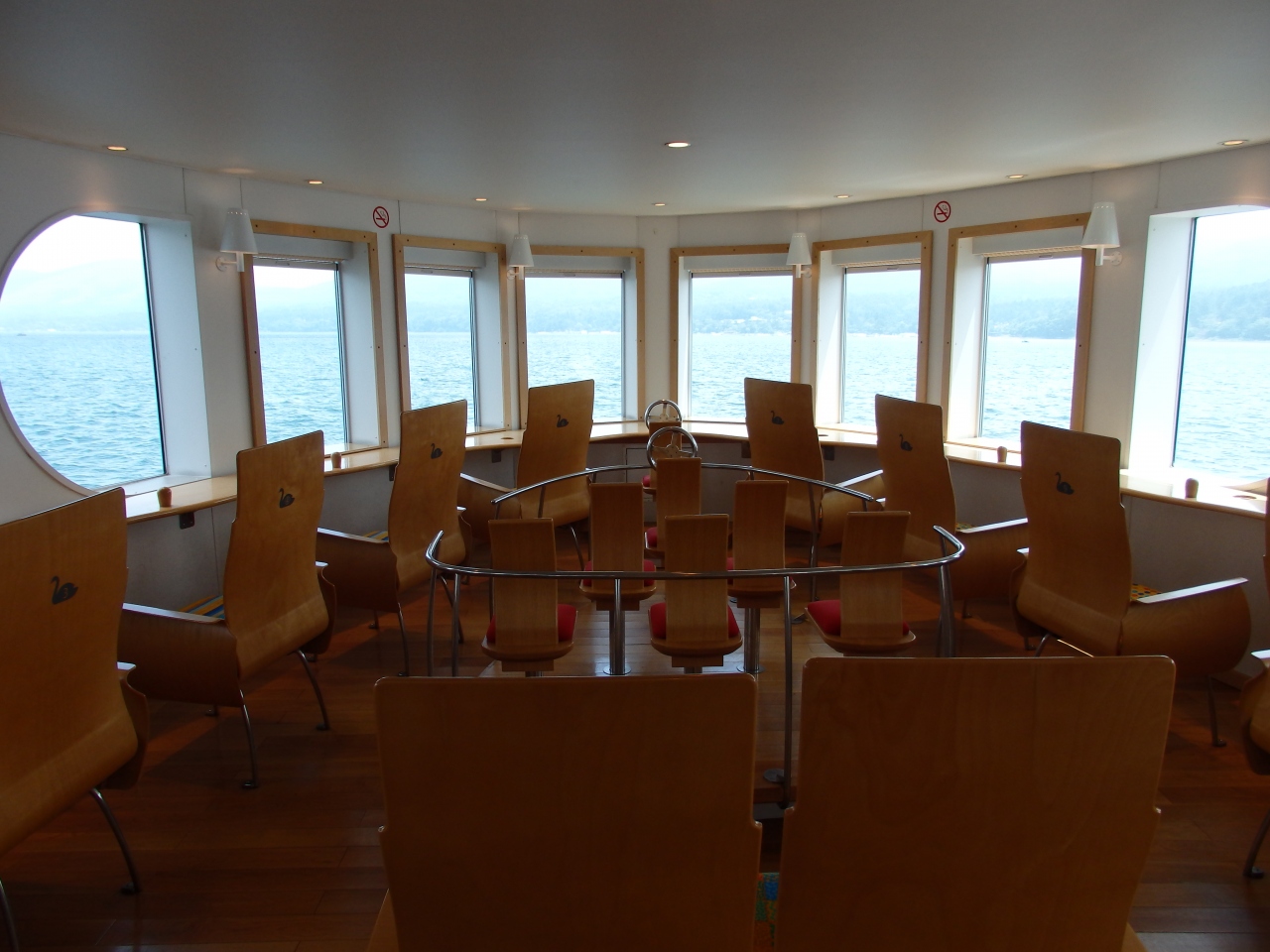 船の中は、湖を眺望できる席がたくさんあり、約30分、山中湖の自然を楽しみました。ガスがかかっていて富士山が見えなかったのが残念でした。