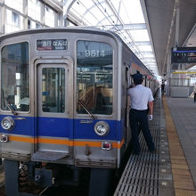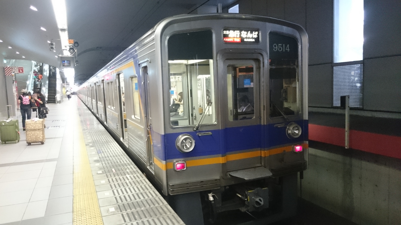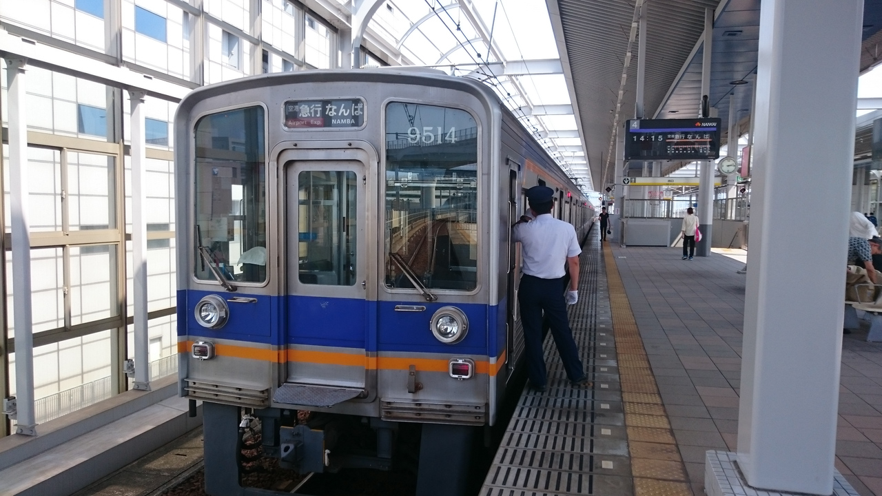南海電鉄では、なんば駅から関西空港までは、特急「ラピート」、空港急行、普通合わせて1時間に6本、直通電車が運行していますが、中でも1番安くて速い電車は「空港急行」です。なんば~関西空港を44分で結んでおり、ラピートよりも停車駅が多い分、6分だけ余計にかかります。乗車券以外の料金は不要です。なんば発は10時~15時までは15分おきの運転となっており、待たずに乗ることができます。停車駅は本線の急行の停車駅に加えて春木に停まります。実際、空港までのお客さんよりも途中駅までのお客さん方が多いので、なんばから乗るときは、昼間でも結構混雑しています。