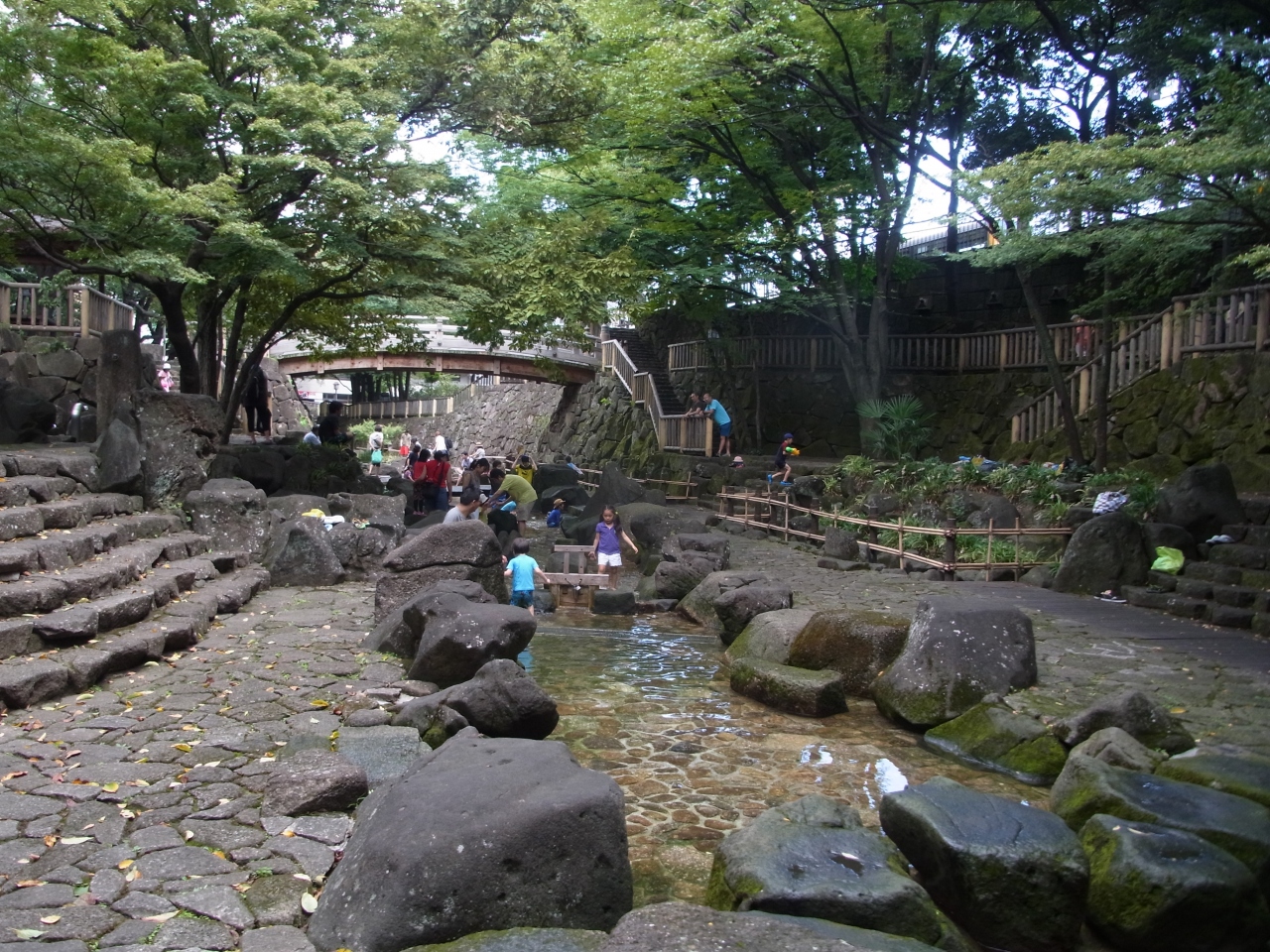 石神井川のかつての流路だったそうで、この近辺では音無川と呼ばれていたようだが、今は人工的な雰囲気。水量は少ないが、水遊びをしている子供達で賑わっていた。