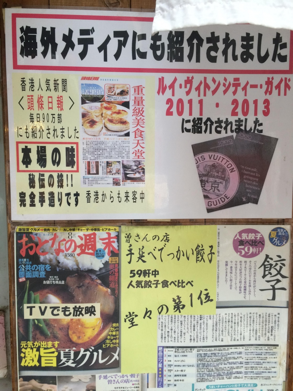 代々木駅から徒歩1分の餃子屋さんです。数多くのメディヤ紹介はもちろんのことルイヴィトンのガイドブックにも掲載されたことのある超有名店です。注文してから焼き上げるので出てくるまで少し時間がかかります。味は普通においしかったです。
