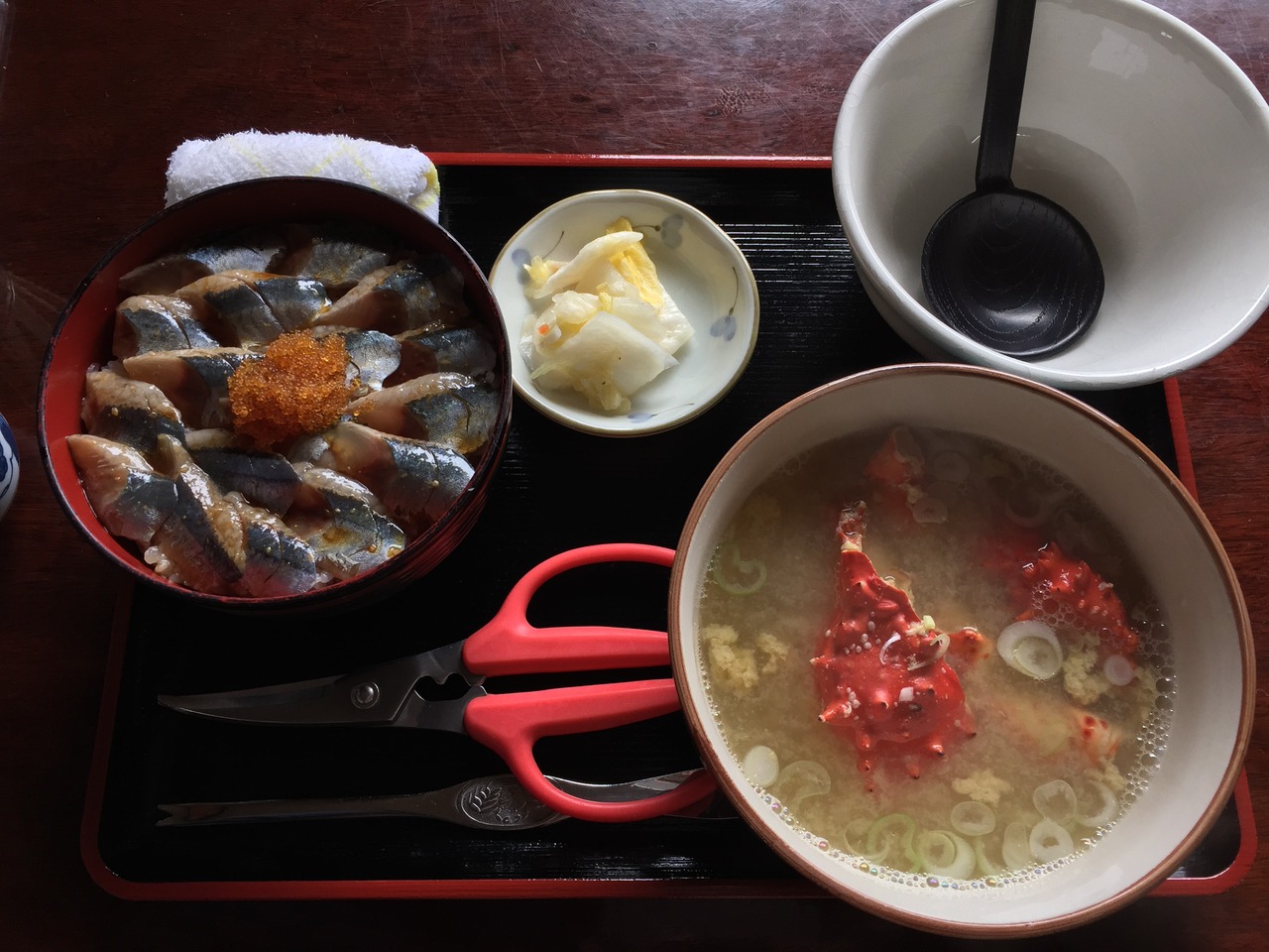 花咲かにの鉄砲汁もついてあのボリュームでサンマ丼セットは1,600円です。