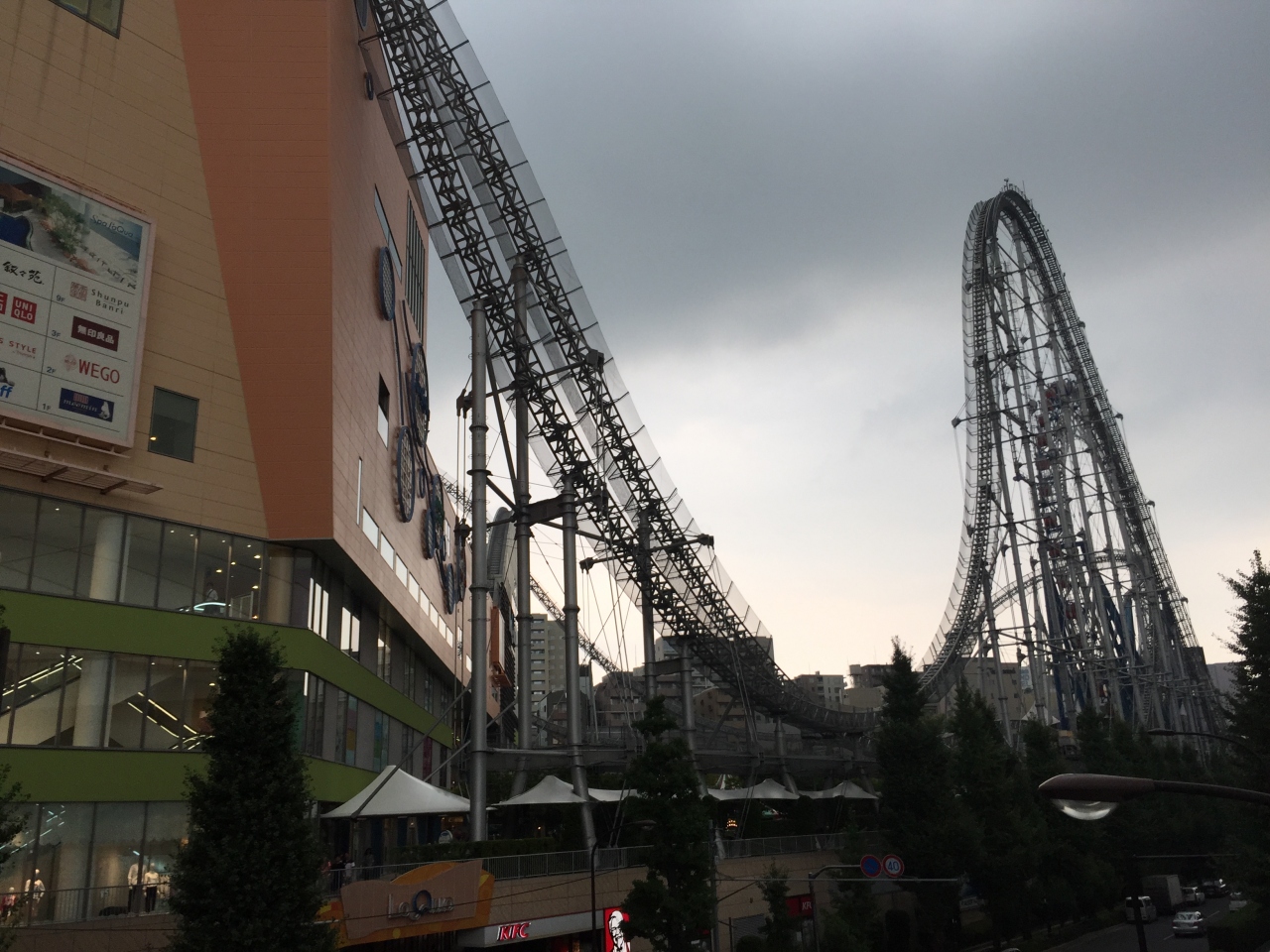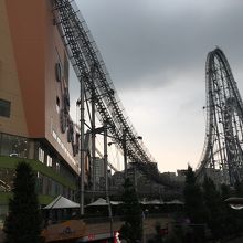水道橋駅からすぐのところにあります。ジェットコースターがすごく、建物の上を走るのは正直乗っても見ててもこわいです。もっとこわいのが垂直落下の乗り物、都心の景色が一望できるところから落下するのはこわすぎますよ。