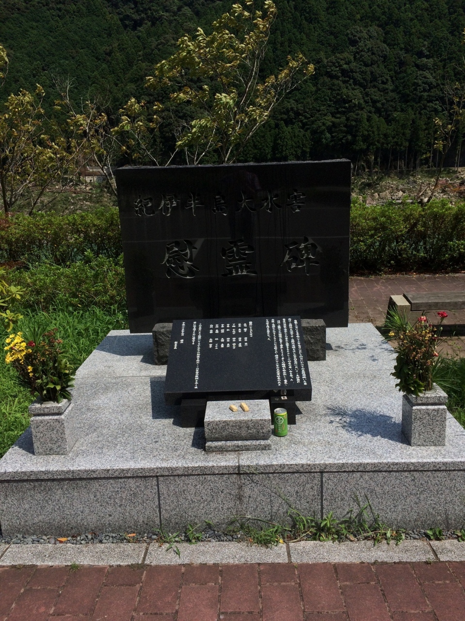 平成22(2010)9月4〜6日にかけて、台風12号による豪雨により甚大な被害を受けました。その犠牲者14名のお名前が刻まれている慰霊碑が、その教訓を後世に伝えるべく訪れた人々を見守るように立っています。