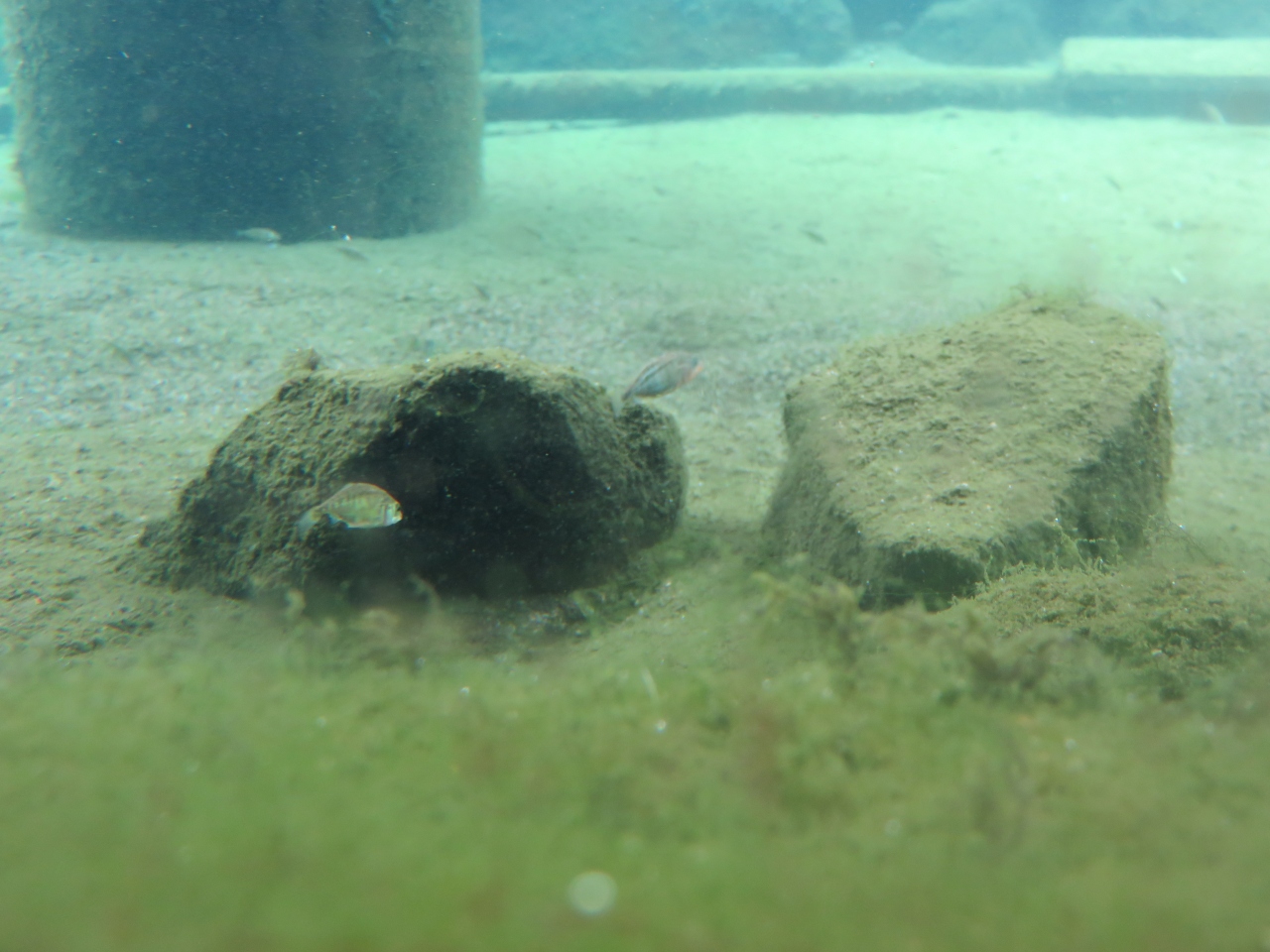 イトヨの巣が数か所あり、じっと見ているとイトヨが巣を守っている様子が見れました。