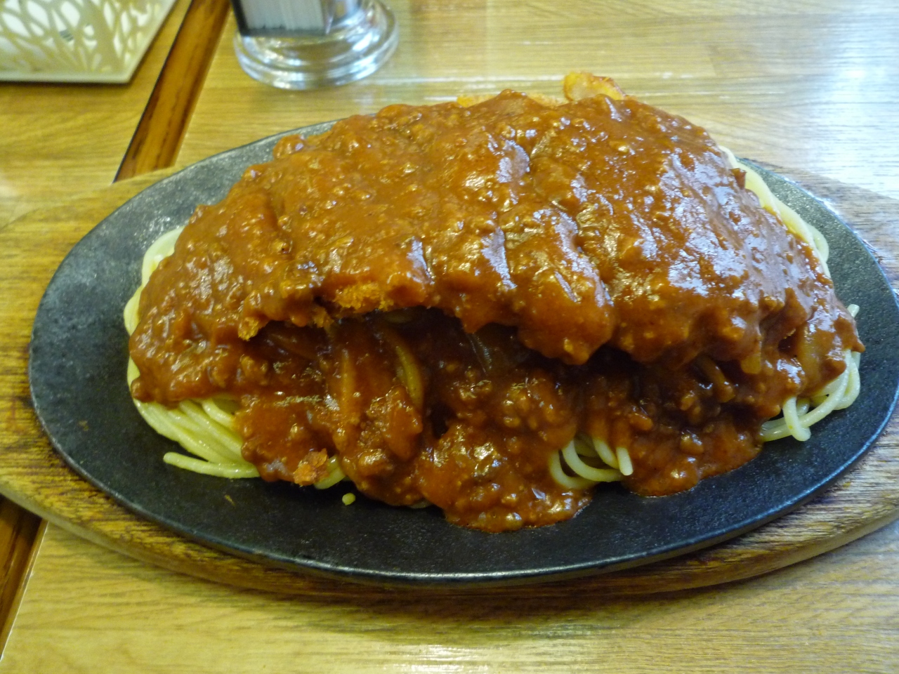 熱い鉄板の上に、スパゲティーとカツが乗っており、思った以上のボリュームでしたので、少食の人は、まず完食出来ない量と思います。味は個人の感覚ですが、普通です。