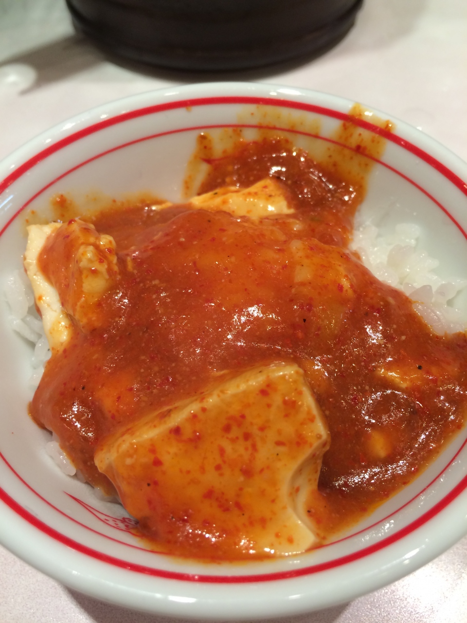 ラーメン中本の定食です。もう少し食べたい方の為の辛子麻婆と小ライスのお得なセットです。御飯も食べたい時にいつもオーダしています。おても辛いですが、夏の暑い日に食べる事をお勧めします。ぜひ、一度、食べにいってみてください。
