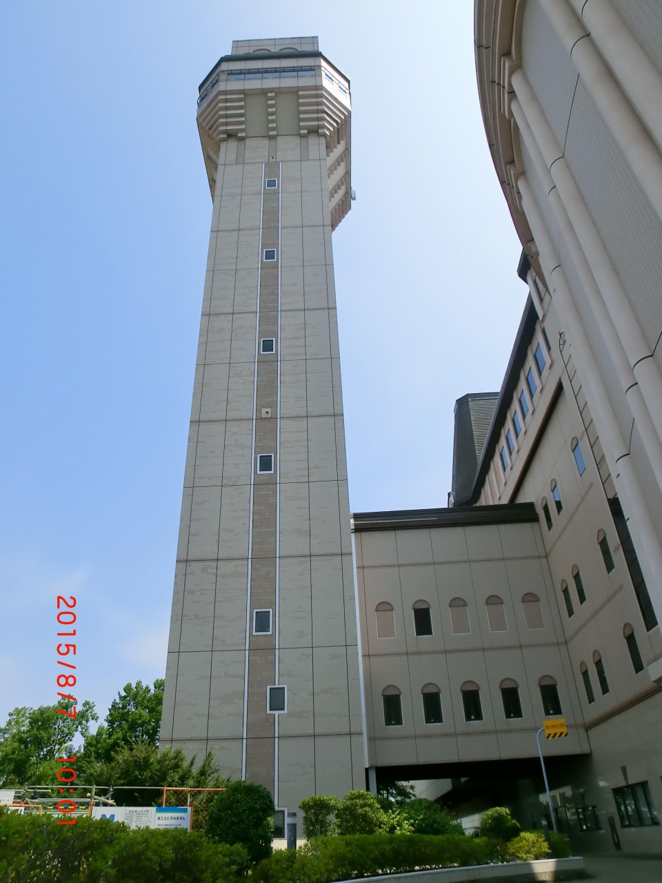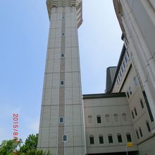 正面玄関内の受付窓口により、名札と望遠鏡用のコインを受け取り展望台へ。