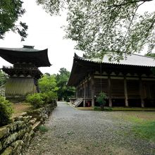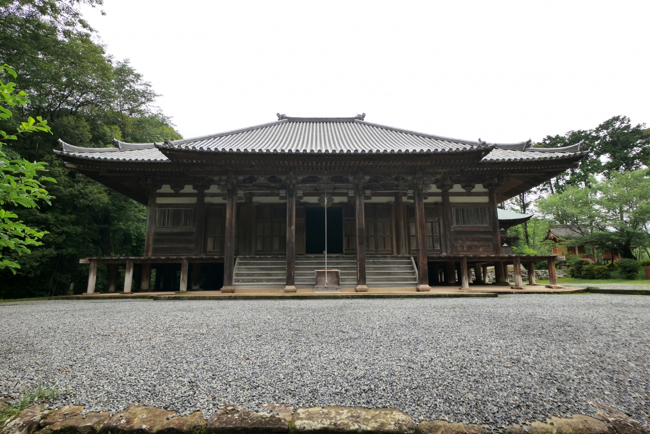 室町初期の国宝の本堂と重文の鐘楼が残る.静かなところで見学者一人いない.本堂も無防備.下の鹿野川には滝がある.静寂なところに滝の水音のみ遠くで聞こえる.無造作に並べられたような伽藍に見えるのは周辺が整備されていないからだ.国宝のある名刹だが,忘れられているようなお寺だ.周りの緑も素晴らしい.このお寺には本当に来てよかったと思う.本堂も山門も鐘楼も独特の室町初期の建物で素晴らしい.必見だ