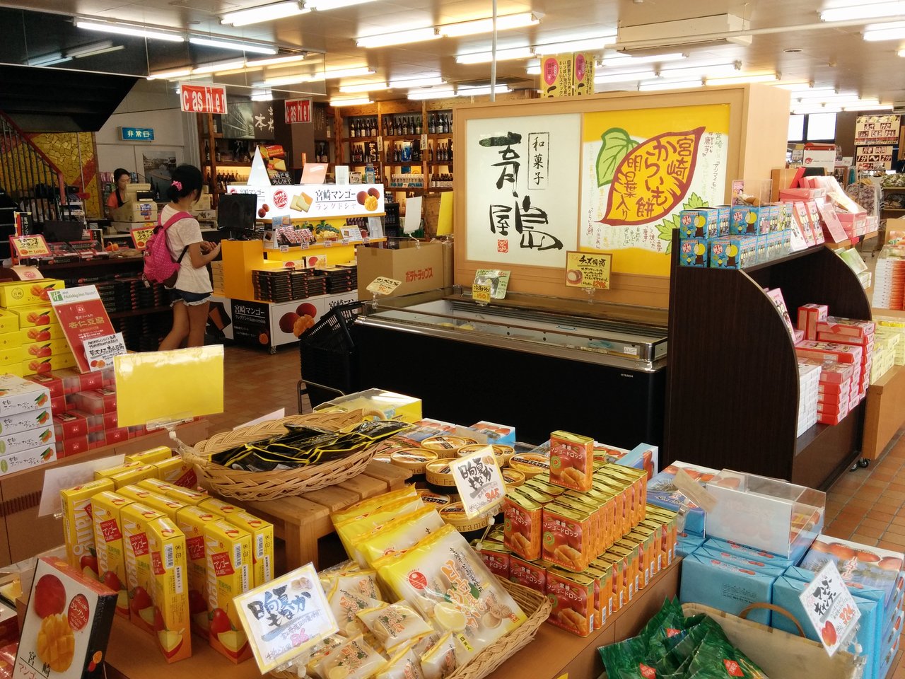 青島屋さんの店内は、宮崎特産のお土産販売コーナーと、食事ができるレストランコーナー、コーヒーなどのカフェコーナーがありました。