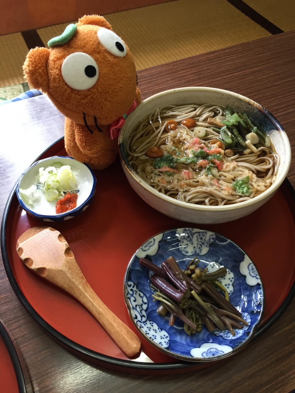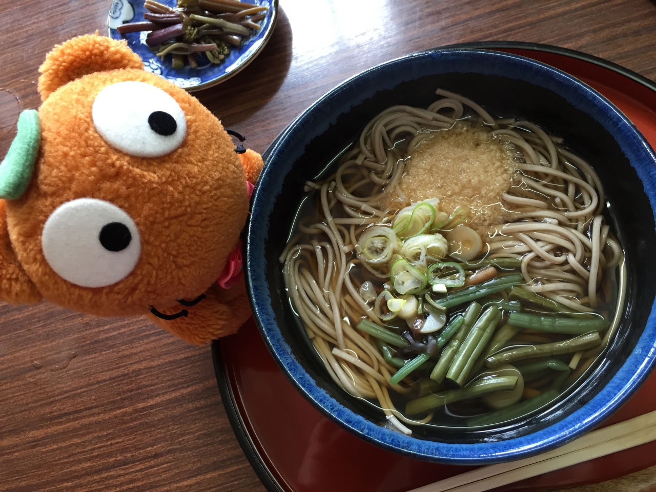 友達は謙信そば(温)、私は山菜とろろそば(温)を注文しました。