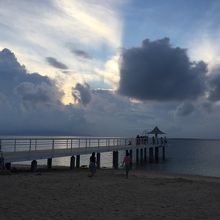 静かで波の無い綺麗なビーチです。プライベートビーチなので、一般客が泳ぐ雰囲気ではありませんが、夕刻のサンセットタイムには、夕焼けやを見るために人が集まってきます。夕焼けやか出なかった場合も、綺麗な風景が撮れますよ。