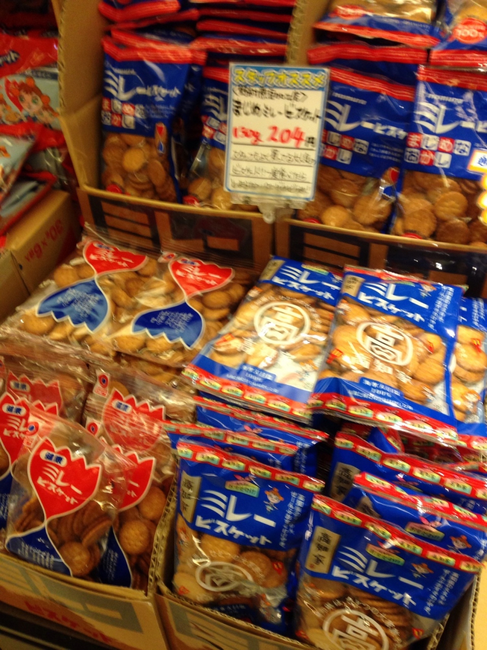 ミレービスケットなるもの お味サイズ違いで種類が沢山。レトロなパッケージも気に入り購入。 やや硬めのビスケットで 味は甘いけどしょっぱい あと引く美味しさ!これを買いに又訪れるそうです。