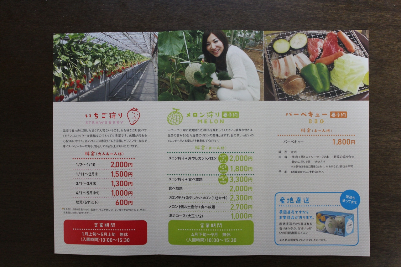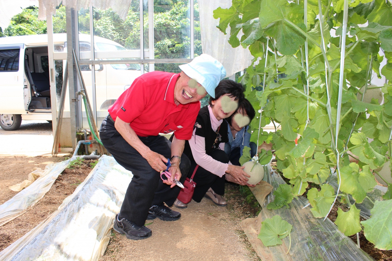 宿泊したホテルで紹介されたメロン狩り農園です。6月~9月はメロン狩りで、1月~5月はイチゴ狩りをやっているそうです。食べ放題もありますが、今回は「メロン狩り+冷やしカットメロン」の1800円コースを選択しました。収穫したメロン1個が化粧箱に入って、お土産として付いてきます。その場で食べたメロンは絶妙な熟れ加減で甘くてジューシーでよく冷えていて大変美味しかったです。お土産のメロンは1週間後が食べ頃です。