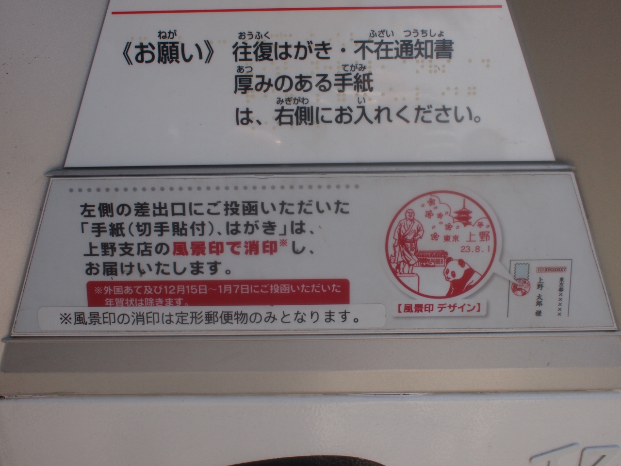 パンダや桜、西郷さんなど上野にちなんだ風景印です。