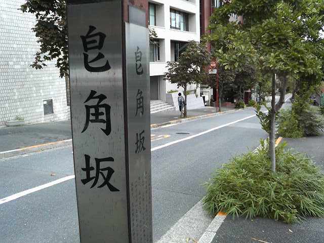 歩道の端に坂の名や説明が書かれた柱があり、かつて坂道沿いに皀角(サイカチ)樹が多くあったことにちなみこの名が付いたとのこと。