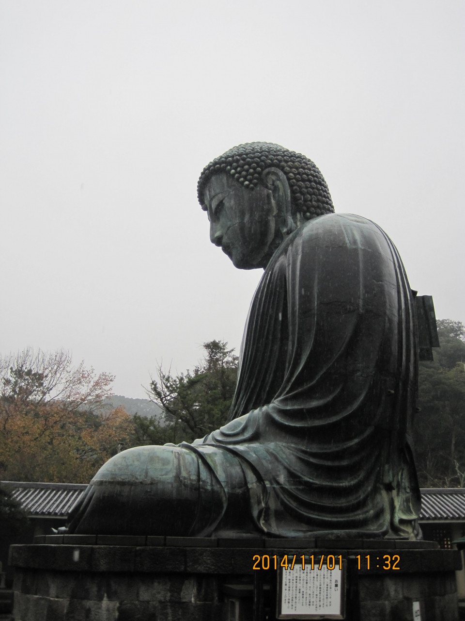 大雨の中の大仏観光でした。初の鎌倉大仏観光で、正直な所もっと大きいものをイメージしていましたが、案外小さかったです。しかし、大仏の内部に入場でき見学できるのは貴重な体験でした。内部は階段を登ってちょっとした展示物があります。観光客で大変賑わっており、大仏の内部に入場する際は列ができていました。