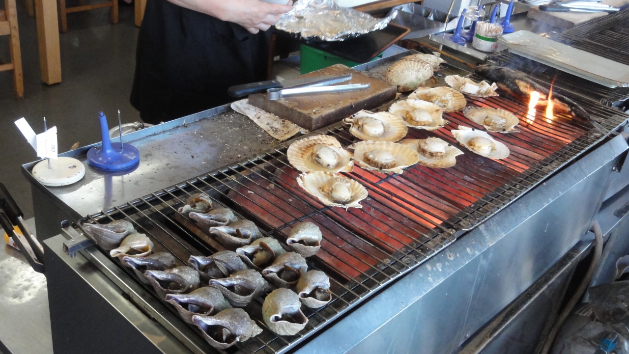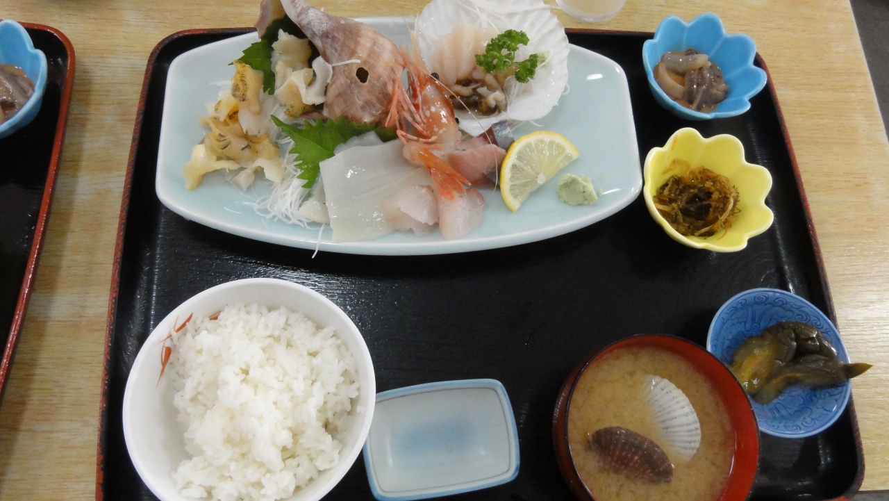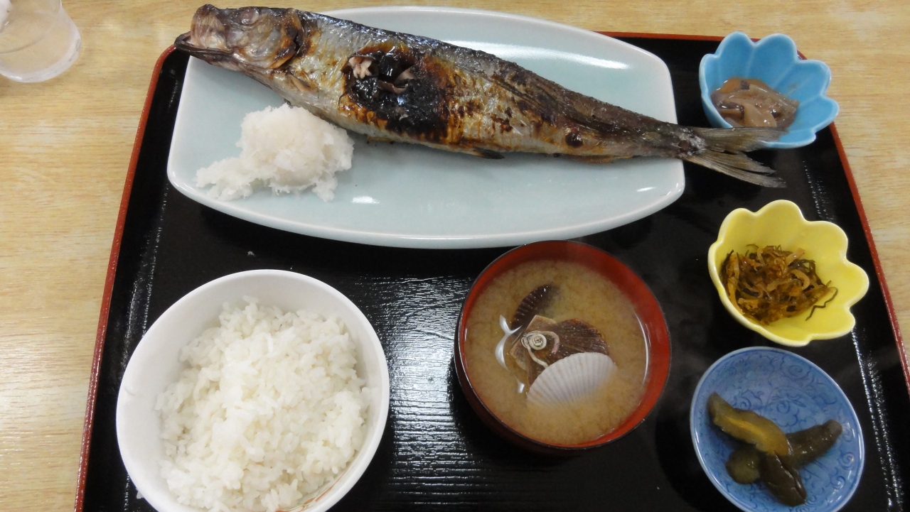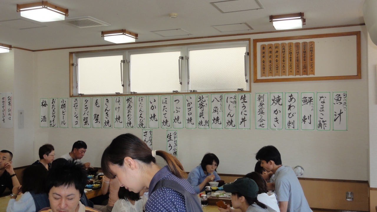 大衆食堂の雰囲気にて、ざわついた中、小走りにて戴きました。店頭で焼かれていた大きな鰊がお膳に乗って出てきました。けっこうあっさりしていて、一人で食べられます。海鮮物も美味しかったです。