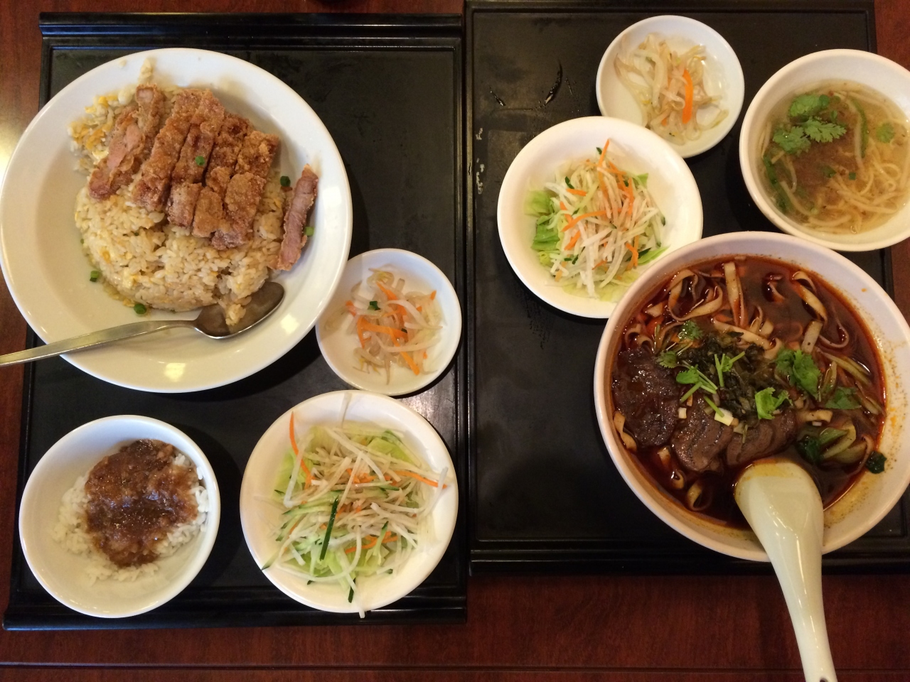 メニューを見ると、どれも美味しそうで、なかなか決められなくて、結局、私は、人気ナンバー3の牛肉麺セットに、友人は人気ナンバー2パイクー炒飯セットにしました。ちなみに、人気ナンバー1は、豚角煮と青菜の定食セットだそうです。
