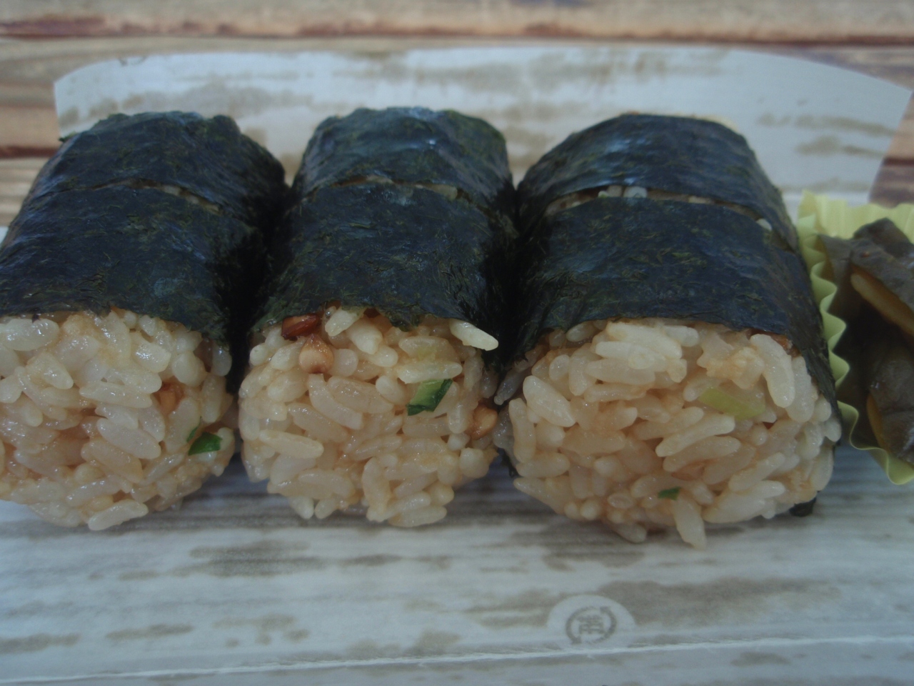 朝ごはんに代わりに、深川のご当地モノB級グルメを探していた。そこで見つけた「深川そばめし俵おむすび」包みを開けると、可愛らしい俵おむすびが3個入っていた。ひと口サイズの俵おむすびを勿体ないからと、ふた口でひとつ頂く。香ばしさと歯ごたえにビックリ!こんな小粒でも驚愕の旨し味!1個120円くらいではあるが、なんだか朝から栄養満点の口福な味!でひとり唸りながらあっという間に完食!これは、技あり!リピあり!!の「深川そばめし俵おむすび」でした!!!